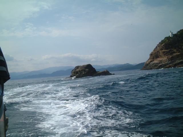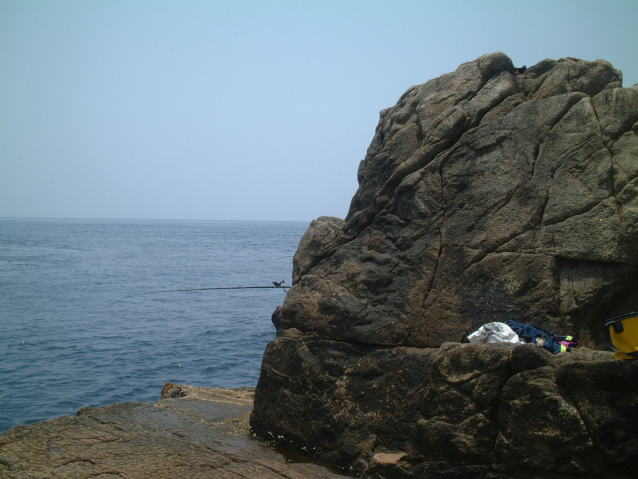 半島の北岸にある神社の「龍権さん」と背後に「臼碆灯台」を従えて、どっしりと海底に根を下ろしているような磯であります。